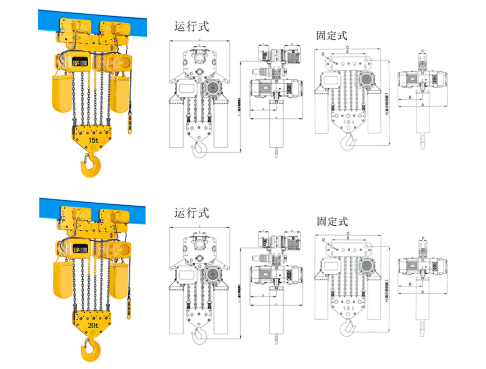 運(yùn)行式環(huán)鏈電動(dòng)葫蘆(30T-50T)尺寸參數(shù): | ||||||